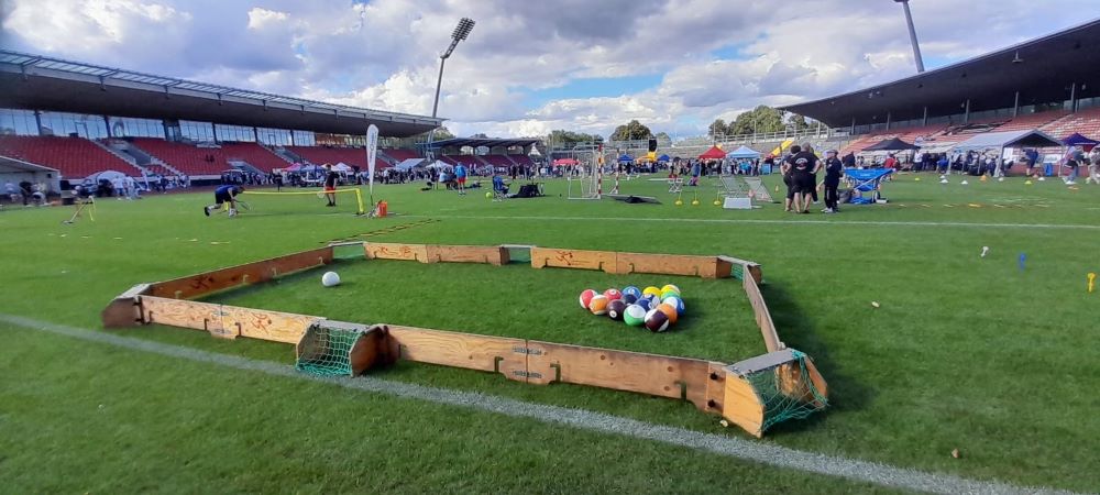 Die Spielfeld-Begrenzung ist schnell zusammengebaut und ebenso schnell wieder zusammengelegt.